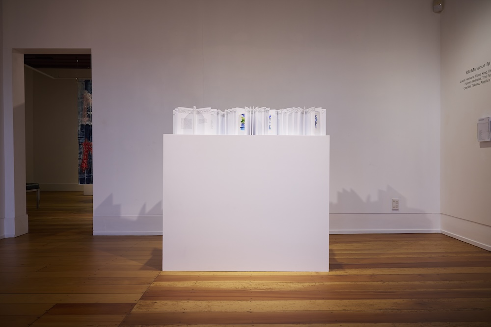 Kia Manahua Te Wāwāhi Tahā is a group exhibition from the whānau collective initiated by Emiko Sheehan. It explores the unique creative processes at the intersection of art-making and motherhood. The name draws from the whakataukī Tā te tamariki tana mahi wāwāhi tahā, honouring tamariki as taonga who disrupt and inspire.