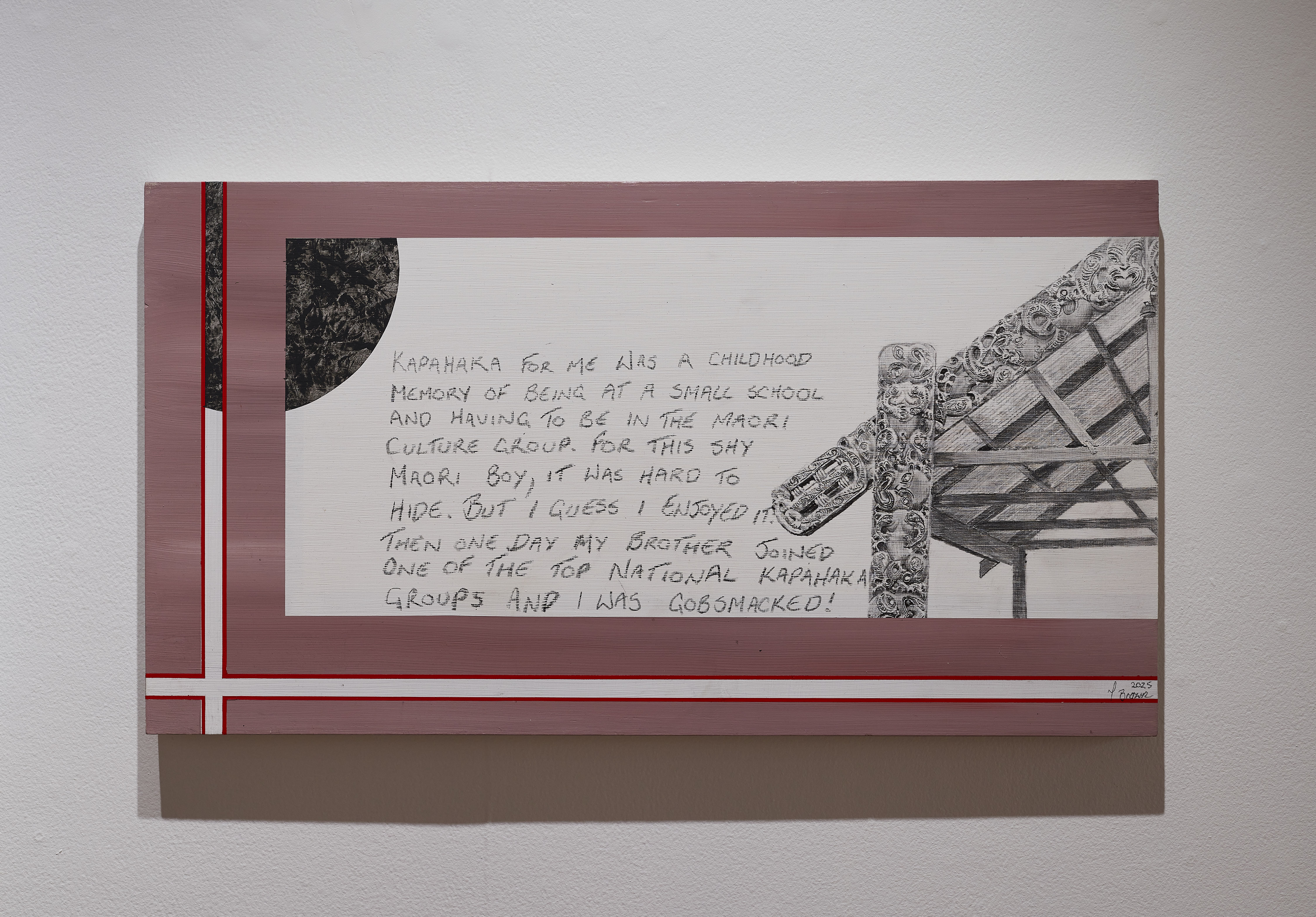 He explores his own Māori heritage and Māoritanga in his multi-disciplinary art practice. He is influenced by a keen interest in photography, particularly of Māori people at work and leisure in our society. Brown often combines photo-realism with references to traditional Māori art forms in his practice, including whakairo (carving) and tā moko (traditional Maori tattoo), which typically culminate as highly rendered drawings or paintings.