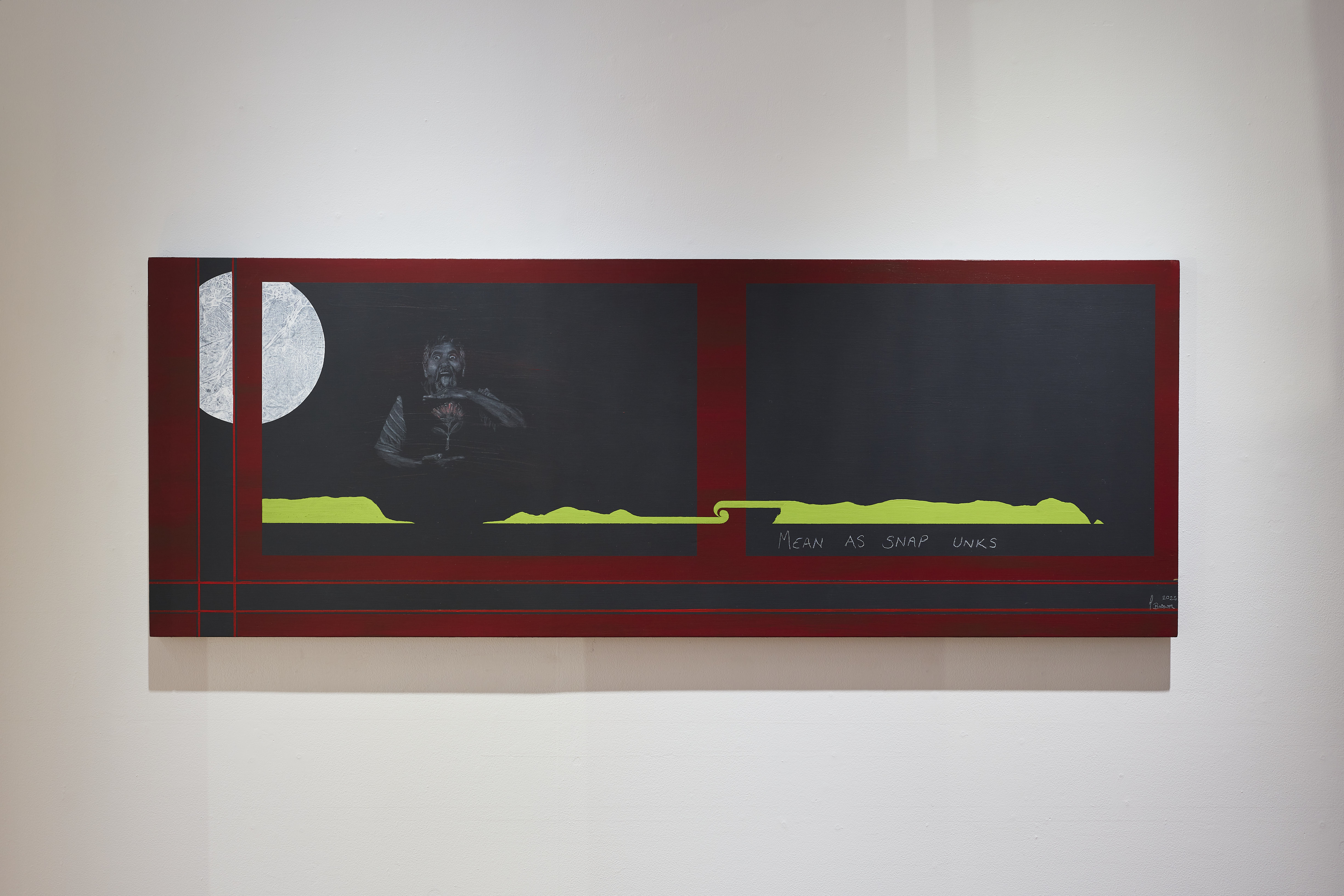 Tony Brown (Te Aupouri) is painting 'the Māori within coming out.' Drawing from childhood memories, some stories leak out onto the board while others stay held in until another day.