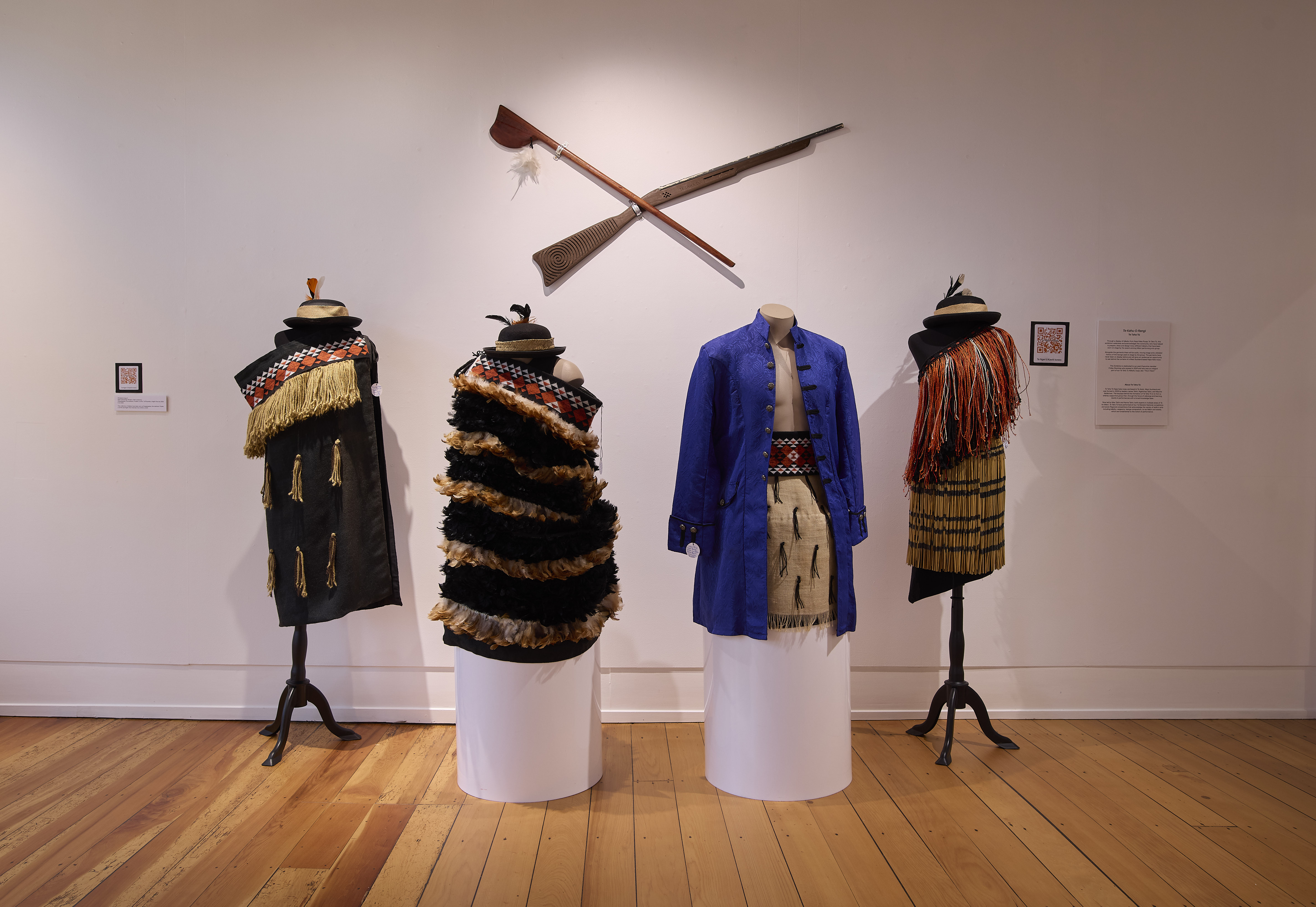 Through a display of kākāhu from Kapa Haka Roopu Te Taha Tū, this exhibition celebrates and acknowledges the community who have helped to prepare, dress and design many different kākāhu that have been worn on stage by the award-winning Māori performing arts group. This exhibition is curated by Cora-Allan Twiss.